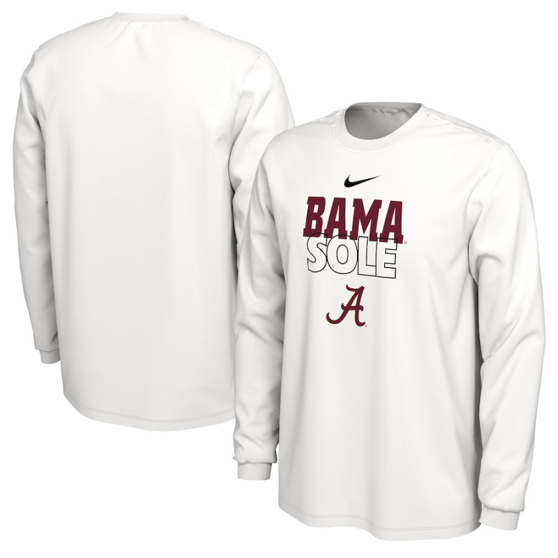 Men's - Alabama Crimson Tide Nike 2023 On Court Bench Long Sleeve White College Basketball T-Shirt