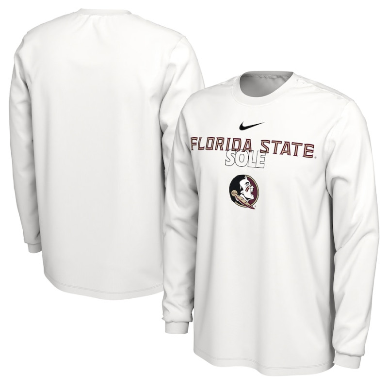 Men's - Florida State Seminoles Nike 2023 On Court Bench Long Sleeve White College Basketball T-Shirt