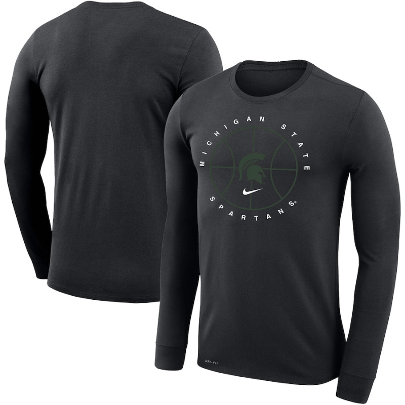 Men's - Michigan State Spartans Nike Icon Legend Performance Long Sleeve Black College Basketball T-Shirt