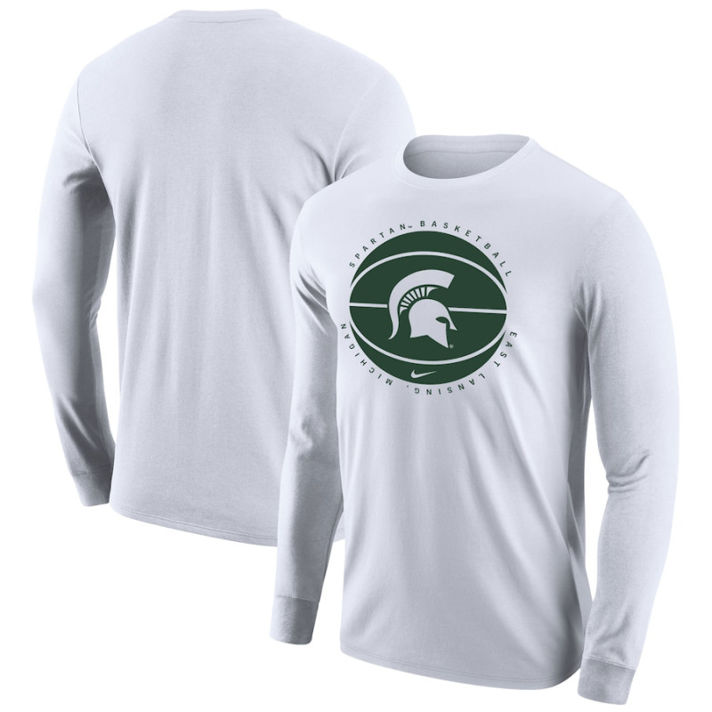 Men's - Michigan State Spartans Nike Long Sleeve White College Basketball T-Shirt