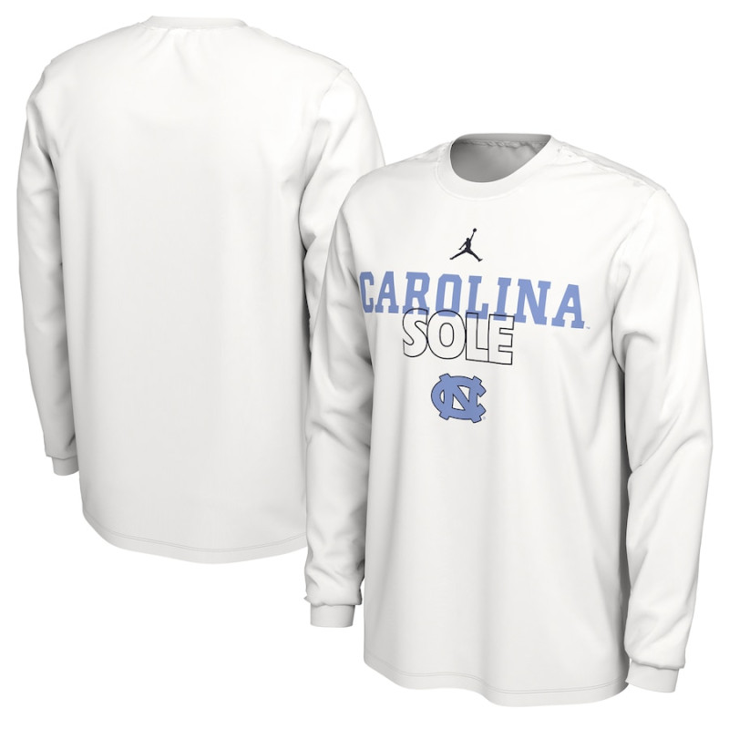 Men's - North Carolina Tar Heels Jordan Brand 2023 On Court Bench Long Sleeve White College Basketball T-Shirt
