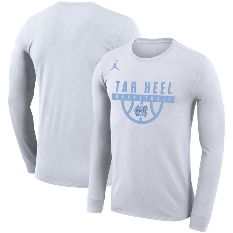 Men's - North Carolina Tar Heels Jordan Brand Drop Legend Long Sleeve Performance White College Basketball T-Shirt