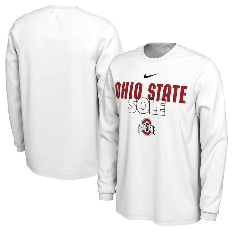 Men's - Ohio State Buckeyes Nike 2023 On Court Bench Long Sleeve White College Basketball T-Shirt