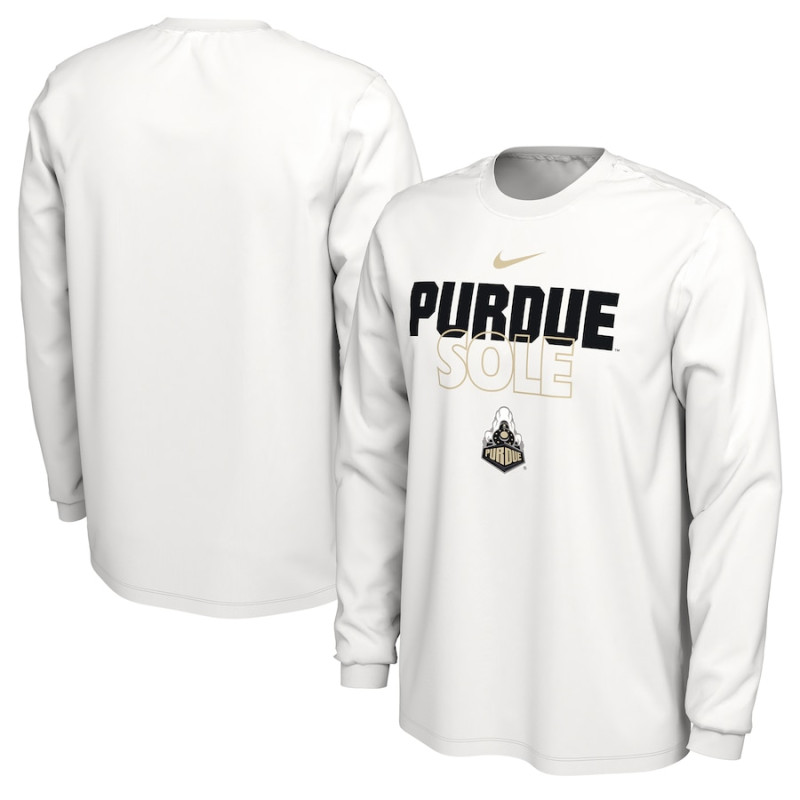 Men's - Purdue Boilermakers Nike 2023 On Court Bench Long Sleeve White College Basketball T-Shirt