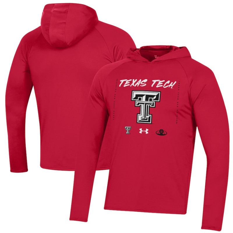 • Men's - Texas Tech Red Raiders Under Armour 2023 On Court Bench Shooting Long Sleeve College Basketball Hoodie Red College Basketball T-Shirt