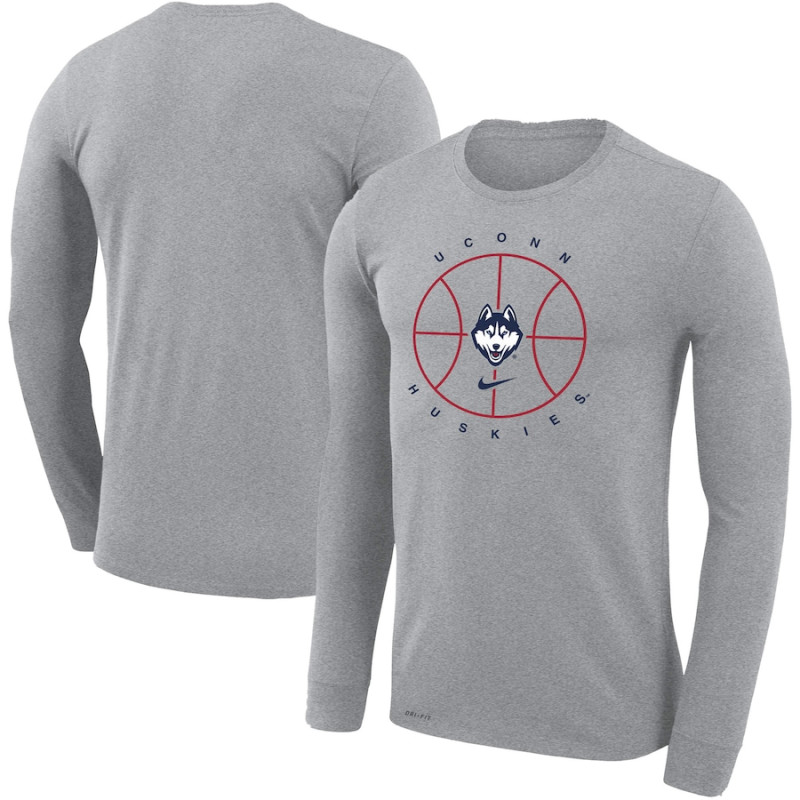 Men's - UConn Huskies Nike Icon Legend Performance Long Sleeve Heathered Gray College Basketball T-Shirt