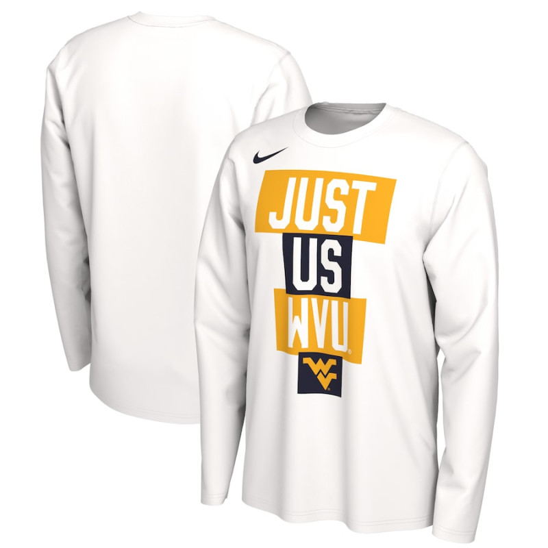 Men's - West Virginia Mountaineers Nike 2021 Postseason JUST US Bench Legend Long Sleeve White College Basketball T-Shirt