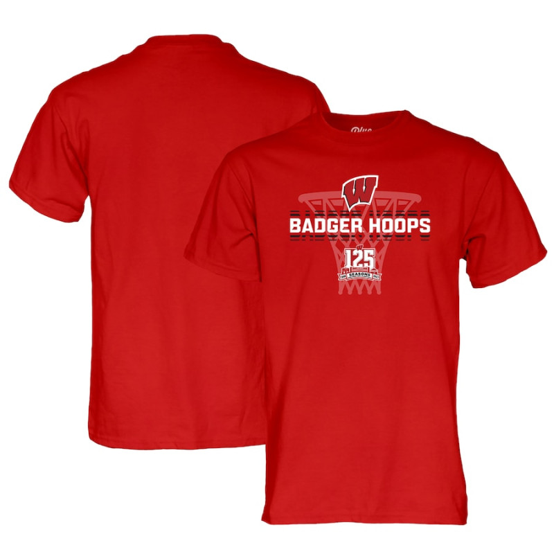 Men's - Wisconsin Badgers Blue 84 125th Anniversary Red College Basketball T-Shirt