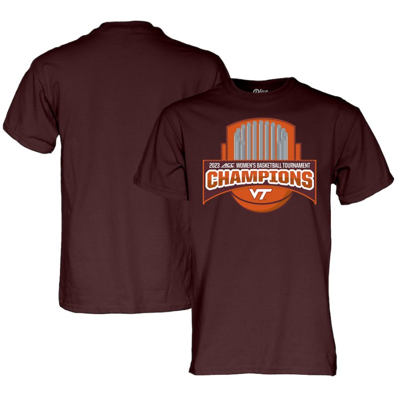 Women's Virginia Tech Hokies Blue 84 2023 ACC Conference Tournament Champions Commemorative Maroon College Basketball T-Shirt